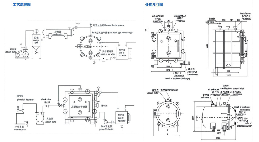 如果采用冷凝器,物料中的蒸發(fā)溶劑可通過冷凝器加以回收,是一種常用的干燥設(shè)備。如果采用JZJS-70水環(huán)泵真空機(jī)組,可不用冷凝器,則節(jié)省能源、投資。